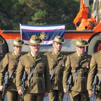 The Royal Australian Corp of Transport Committee engaged Robert to commission a RACT 50th anniversary artwork, depicting equipment and personnel of the various RACT trades across 50 years. The painting and design showcases those air, road and sea components of RACT, with the Corps flag as the background and the HRH The Princess Royal C-I-C royal cypher in the top left corner.